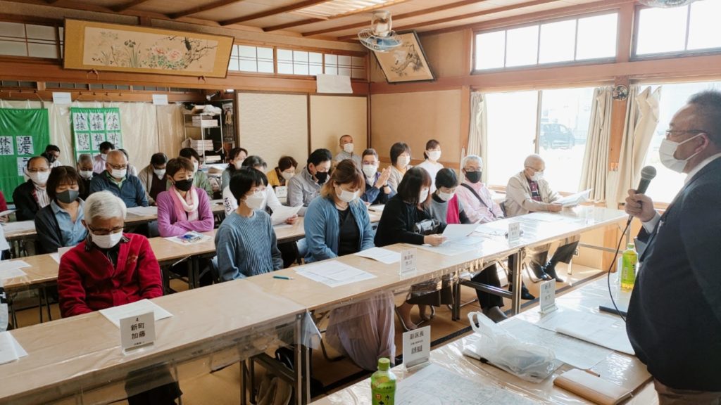 総会には各町内会の令和3年度の町内会長および令和4年度の新町内会長が出席。西今宿区役員より令和3年度の活動報告や決算報告、令和4年度の予算案、活動予定、質疑応答などを行いました。